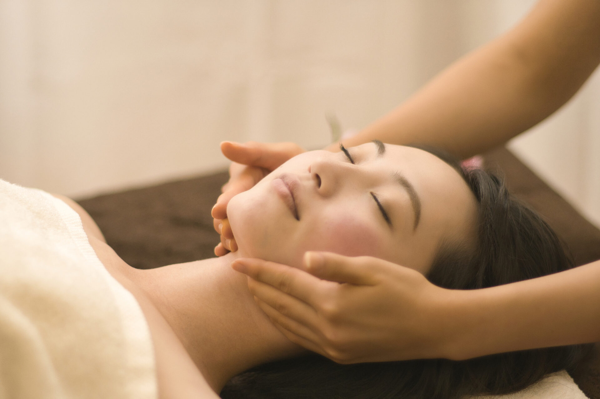 デコルテ・首・頬・お顔全体から背中まで温めてケアすることで、深いリラクゼーションとともに、スッキリと引き締まった印象に。